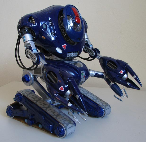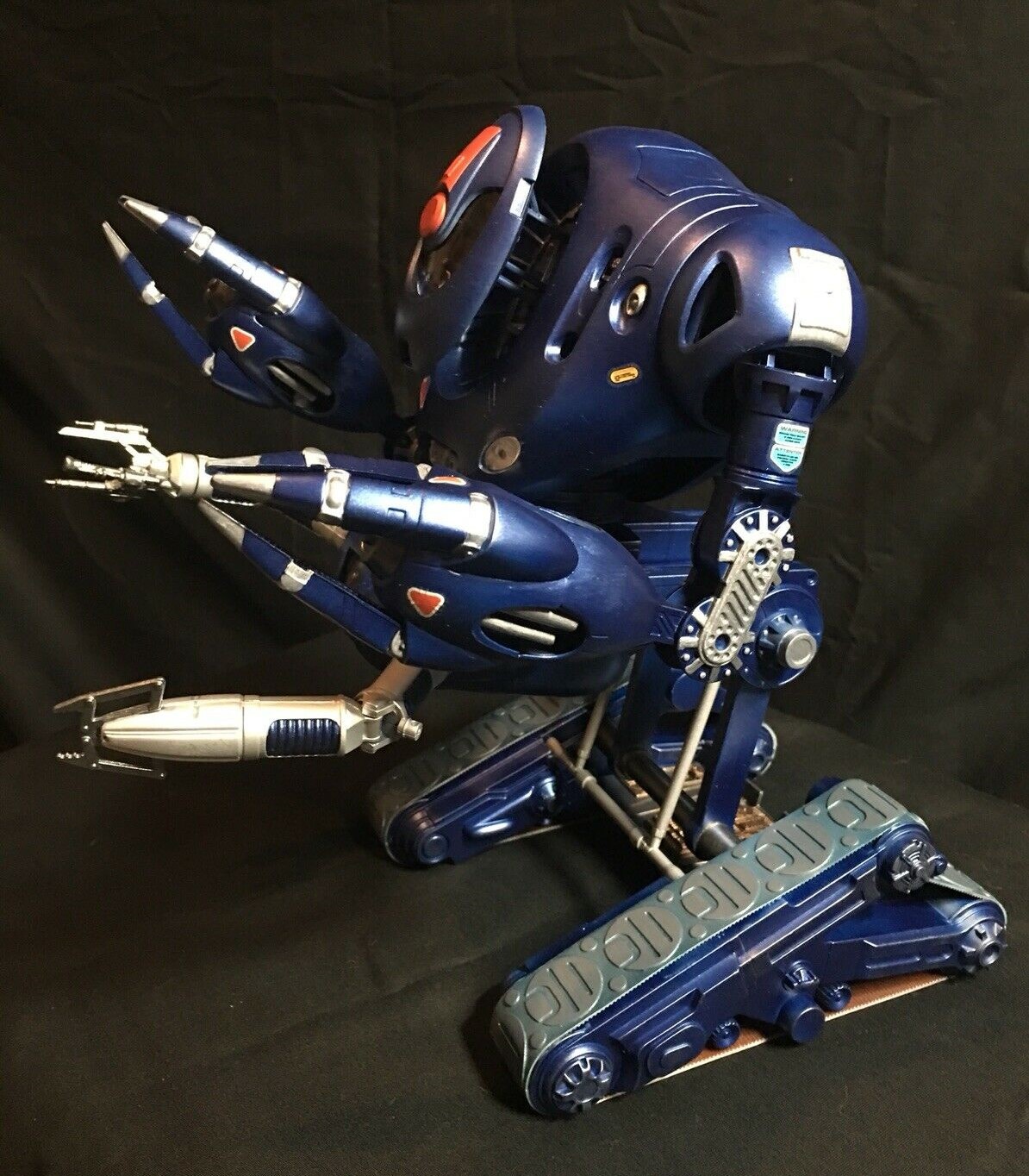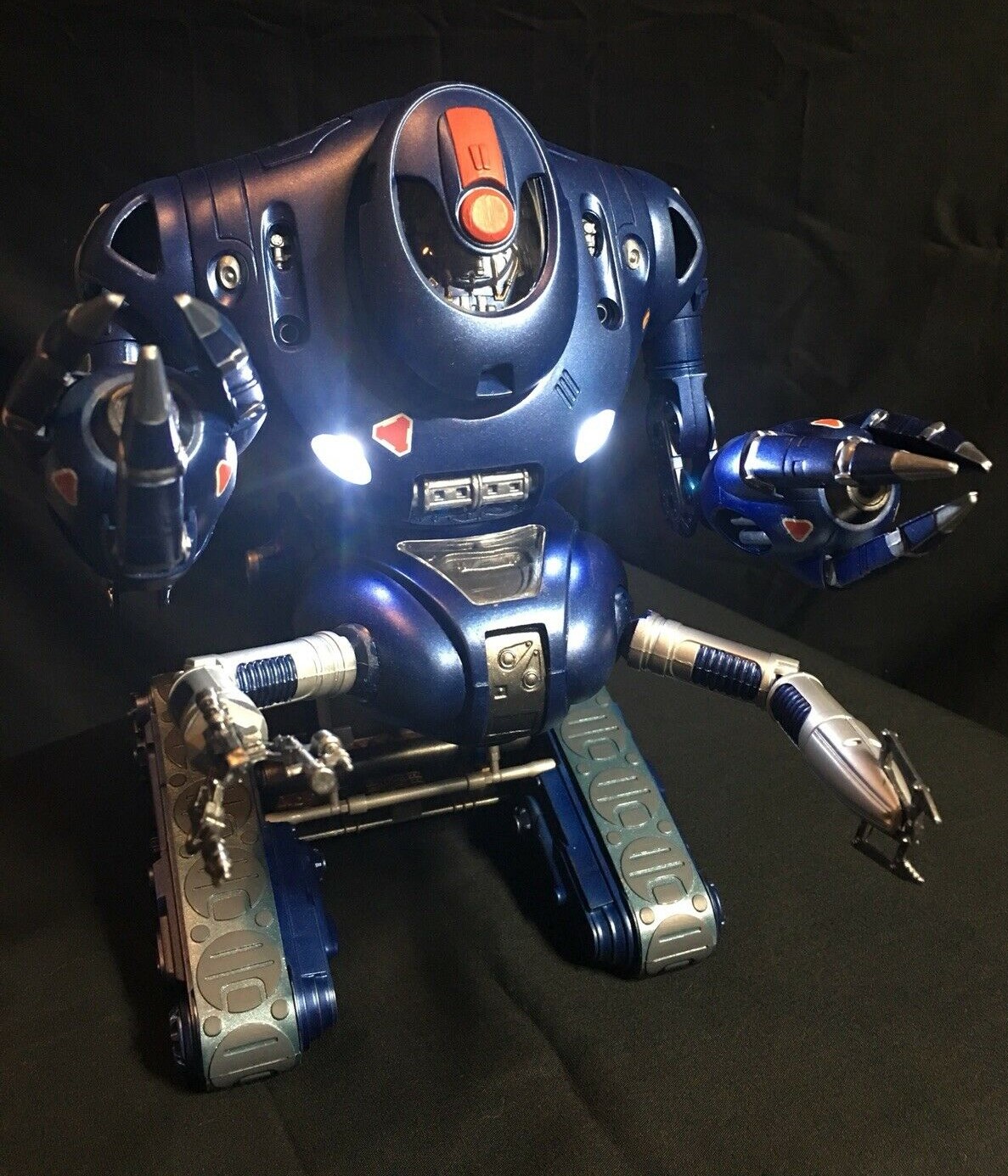 Attacked by giant metal eating spiders, the environmental robot protects the crew of the Jupiter-2 in the brilliant 1998 Movie remake. This model has been customized with battle damage from the spider attack, the inner workings and mechanisms of the robot are now visible thought the damage! It stand roughly 12 inches tall, too! It's a one of a kind custom conversion!