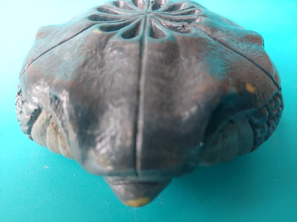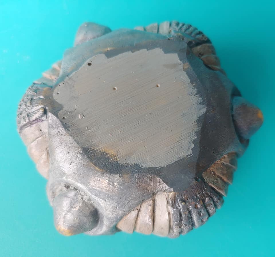 outside of the miniature model of the Jupiter-2, and the Derelict spaceship. The spider's body is just under 4 inches ( 10cm ) in diameter and is the larger of the two sizes made. It is made of solid resign, and has been painted and weathered in a blue / grey color.
