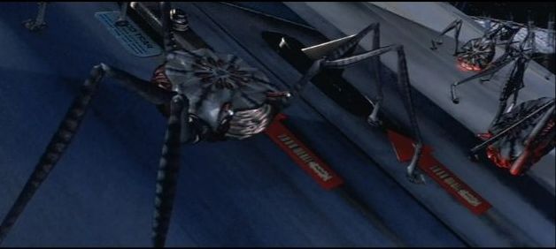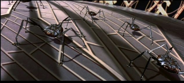 Although the attacking bugs were computer generated, smaller, "real" solid spiders had to be made to attach to the hulls of the model ships for the distance shots. These were made at the prop workshop at Pinewood Studios in England.