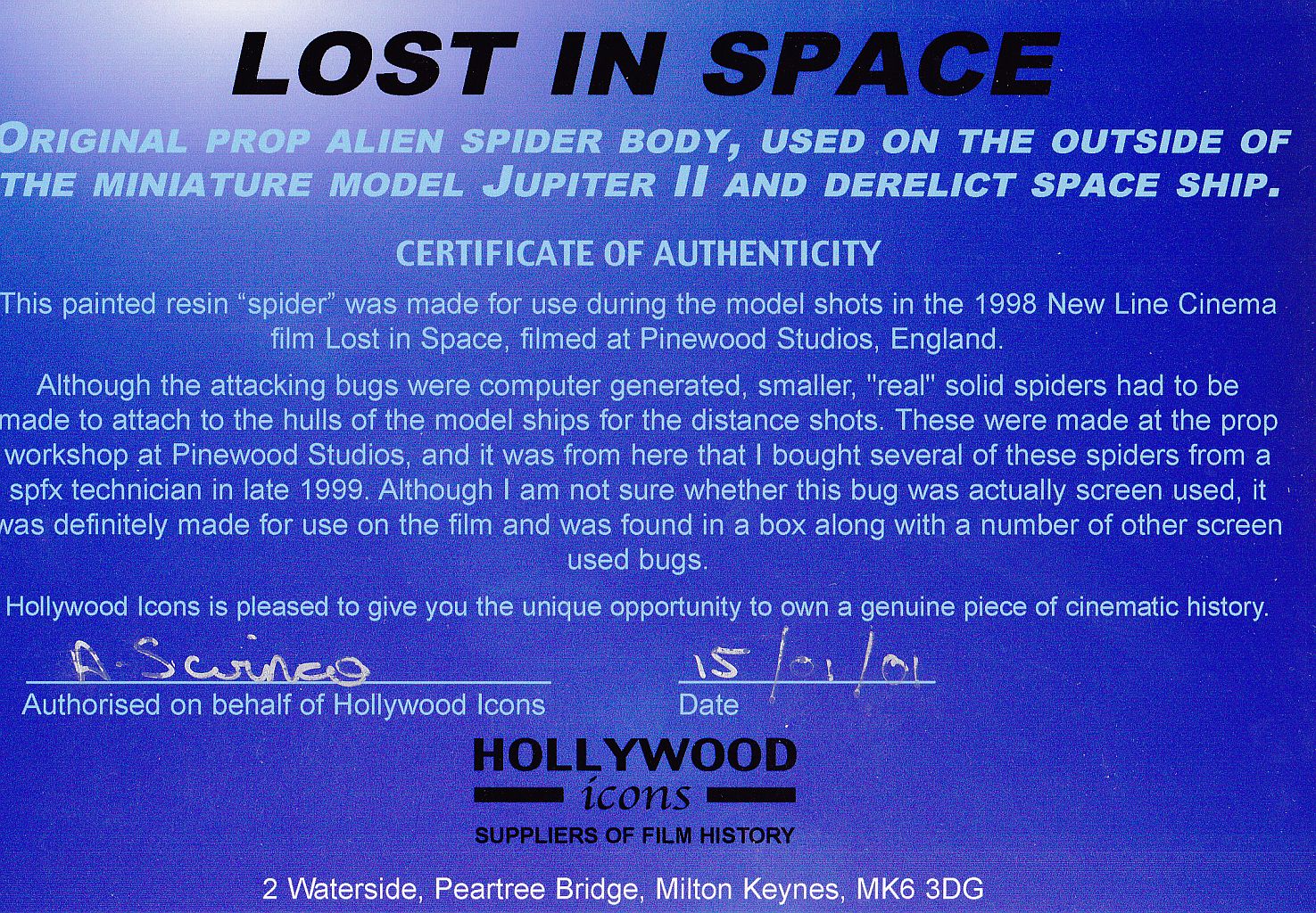 This alien spider prop was used for filming in the 1998 Lost in Space movie produced by New Line Cinema. This prop was used on the