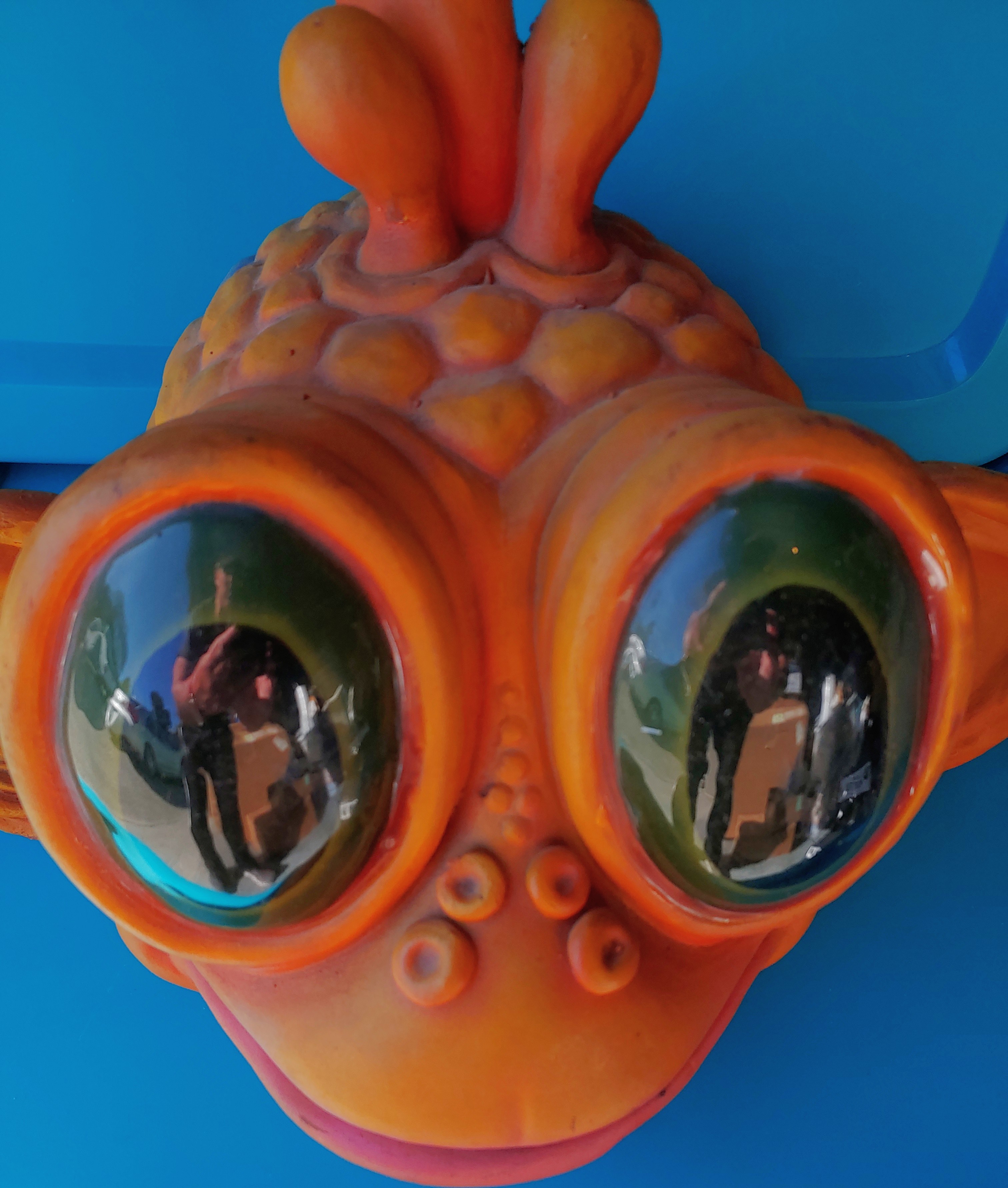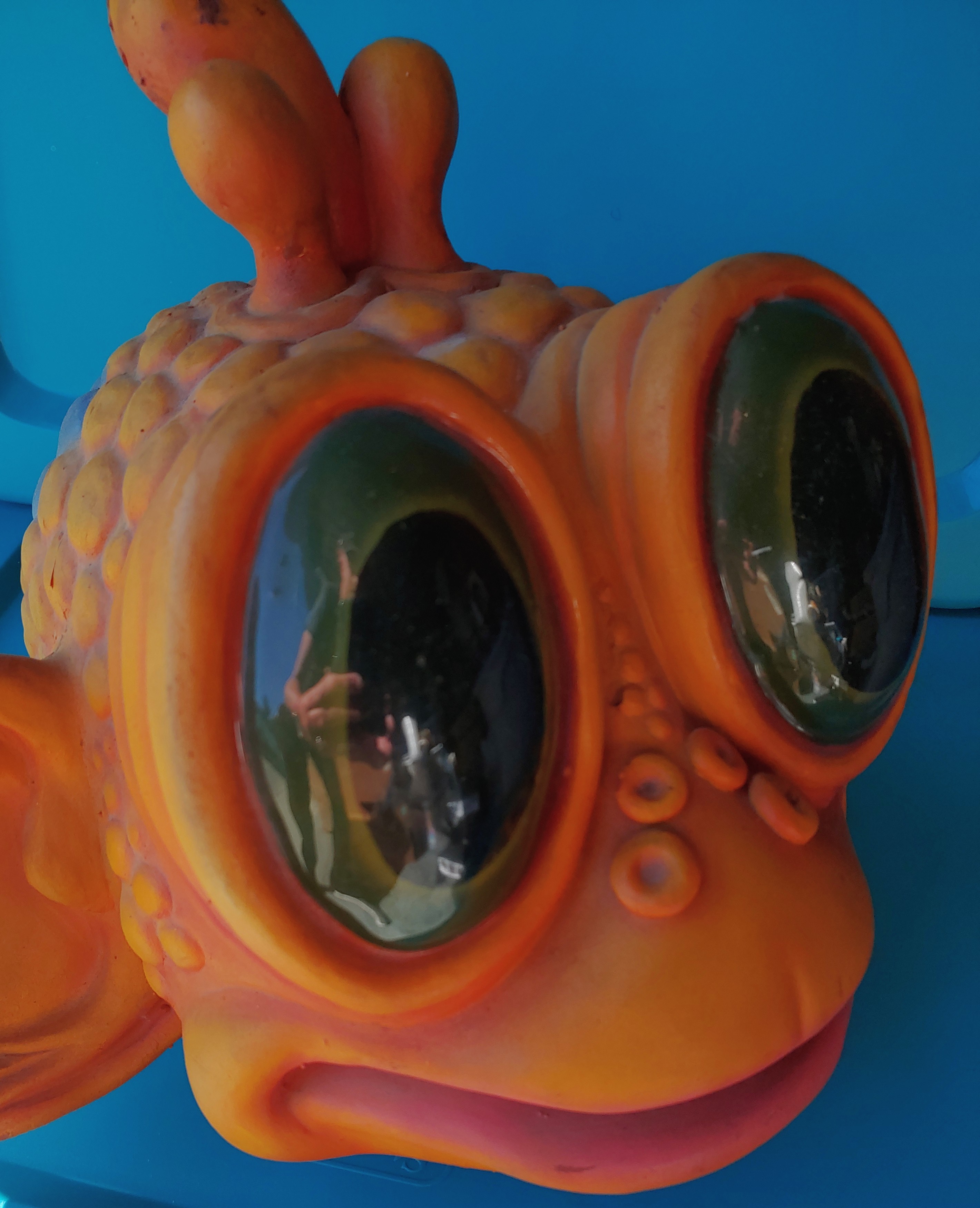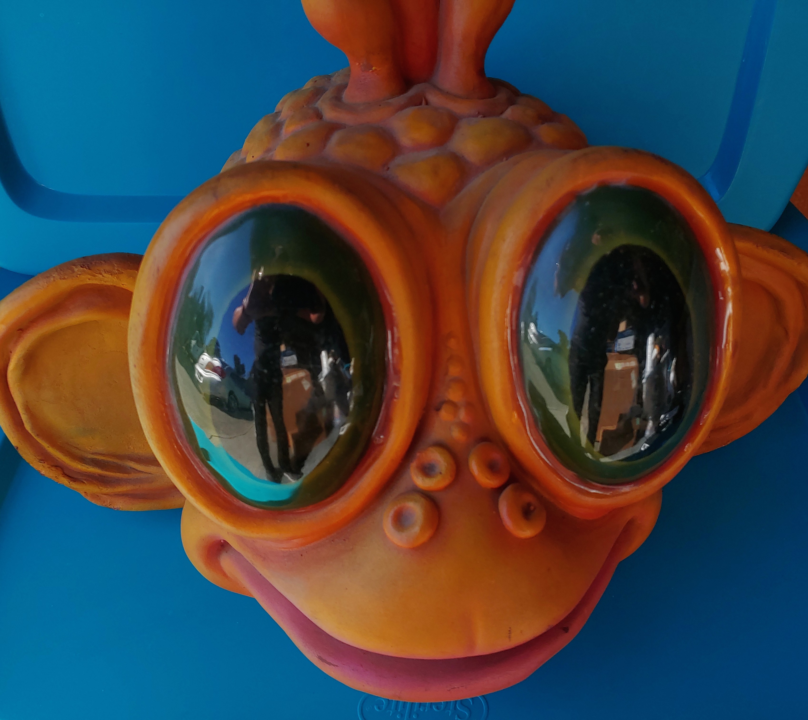 Just an amazing piece of work. This Blarp Alien Monkey prop was made of form rubber. Later it was hand painted with special bright eyes for that final special effect look. This head was used for all the close up takes with Lacey Chabert, and Heather Graham.