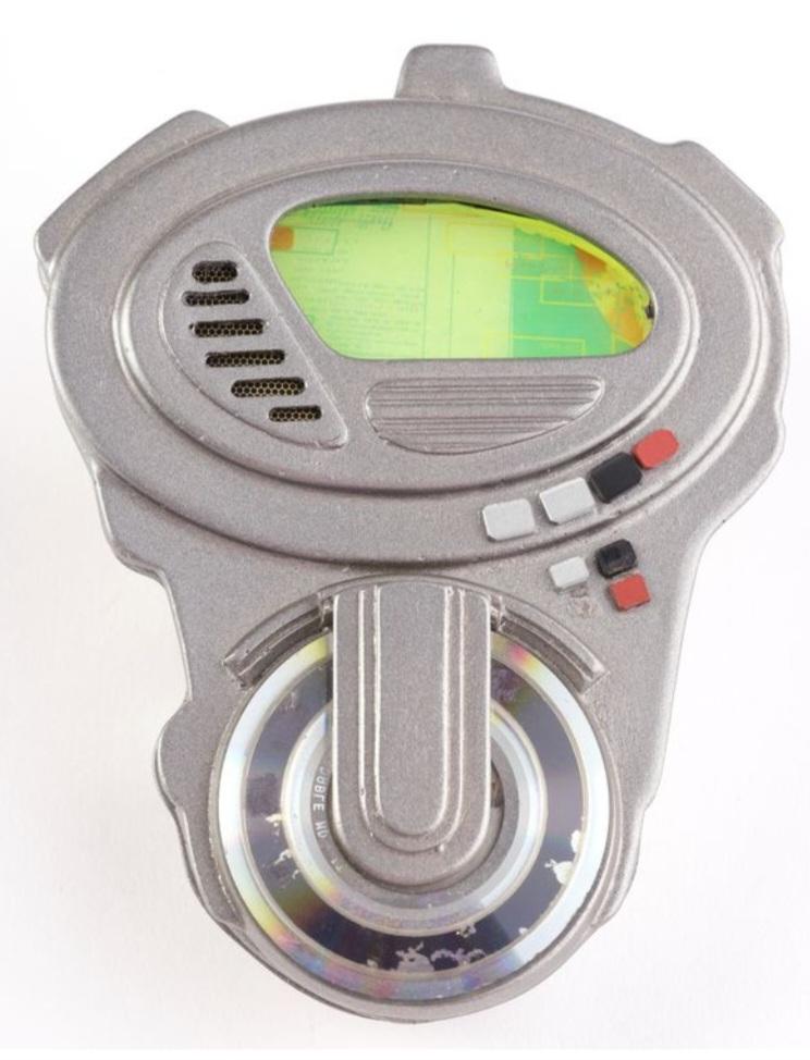 A computer disc drive from Stephen Hopkins sci-fi adventure film Lost in Space. Dr. Smith ( Gary Oldman ) used his computer disc chip to take control of the robot.