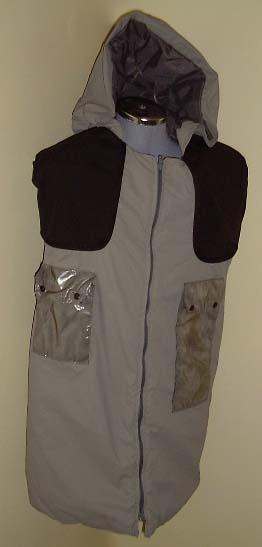 This original costume was used by the ground crew / civilians in the film. The jacket is grey / black sleeveless hooded "puffa" jacket. This item was obtained from the Shepperton Studios in England after the film was completed shooting. The costume is being sold by, "The PropStore" in London. Many Thanks to Stephen Lane on this item.