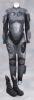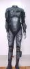of foam latex rubber components cast from sculpts over actual cast of the actor's body. Embellished with cat rubber and resin tech components affixed to chest, arms and thighs. A metallic gray oval badge on the right chest bears white text, "Jupiter Mission".