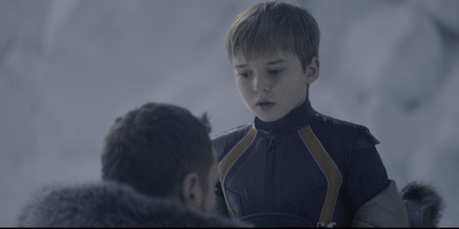 Will Robinson's underlayer spacesuit and wrist communications device from the series Lost in Space. Will wore his spacesuit while escaping the Resolute colony ship in the Jupiter-2 spacecraft and landing with his family on a nearby planet.
