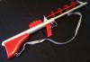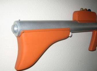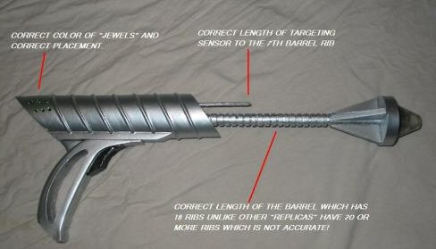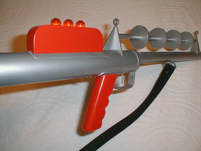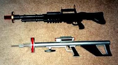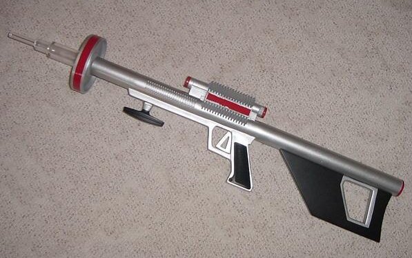 Like the pistols, laser rifles came in two versions. The first version is black, like the early laser pistol, but a new silver version appeared after season one. There were actually three slightly different models of the newer rifles. The only difference between two of the newer ones was in the color of the hand grip and butt; the third was of a completely different design and was the most commonly seen. Unlike the other two rifles, it had a large disk surrounding the barrel toward the end. As with the laser pistols, the rifles were not always effective against some of the creatures encountered by the Robinsons.