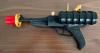 Two versions of the laser pistol appeared during the series run. In the first season the laser pistol was a rebuild of a space gun toy produced by Remco. This version is seen once or twice after the first season, but from season two on, it is replaced by a sleeker, silver pistol. The pistols are powerful weapons, capable of cutting through stone walls ( The Hungry Sea ), but was completely ineffective against wide range of aliens encountered by the Robinsons ( Raddion in The Dream Monster for example ). Despite this, a single short blast was capable of killing one of the giant cyclopes in There Were Giants in the Earth.