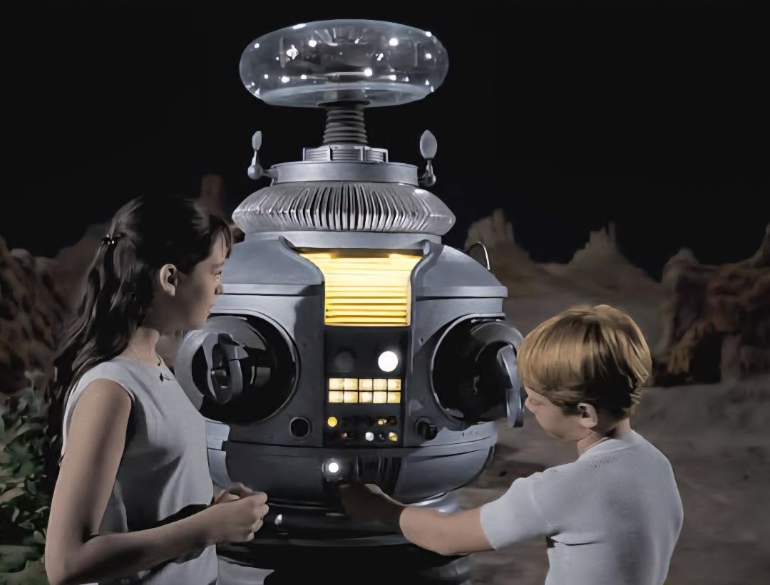 Although a machine endowed with superhuman strength and futuristic weaponry, he often displayed human characteristics, such as laughter, sadness, and mockery, as well as singing and playing the guitar. With his major role often being to protect the youngest member of the crew, the Robot's catchphrases were "That does not compute" and "Danger, Will Robinson!", accompanied by flailing his arms.
