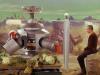 The Robot was performed by Bob May in a prop costume built by Bob Stewart. The voice was primarily dubbed by Dick Tufeld, who was also the series' narrator, and Jorge Arvizu for the Spanish dubbing. The Robot was designed by Robert Kinoshita, who also designed Forbidden Planet's Robby the Robot. Both robots appear together in Lost in Space episode #20, "War of the Robots", and in episode #60, "Condemned of Space". The Robot did not appear in the unaired pilot episode, but was added to the series once it had been greenlit.