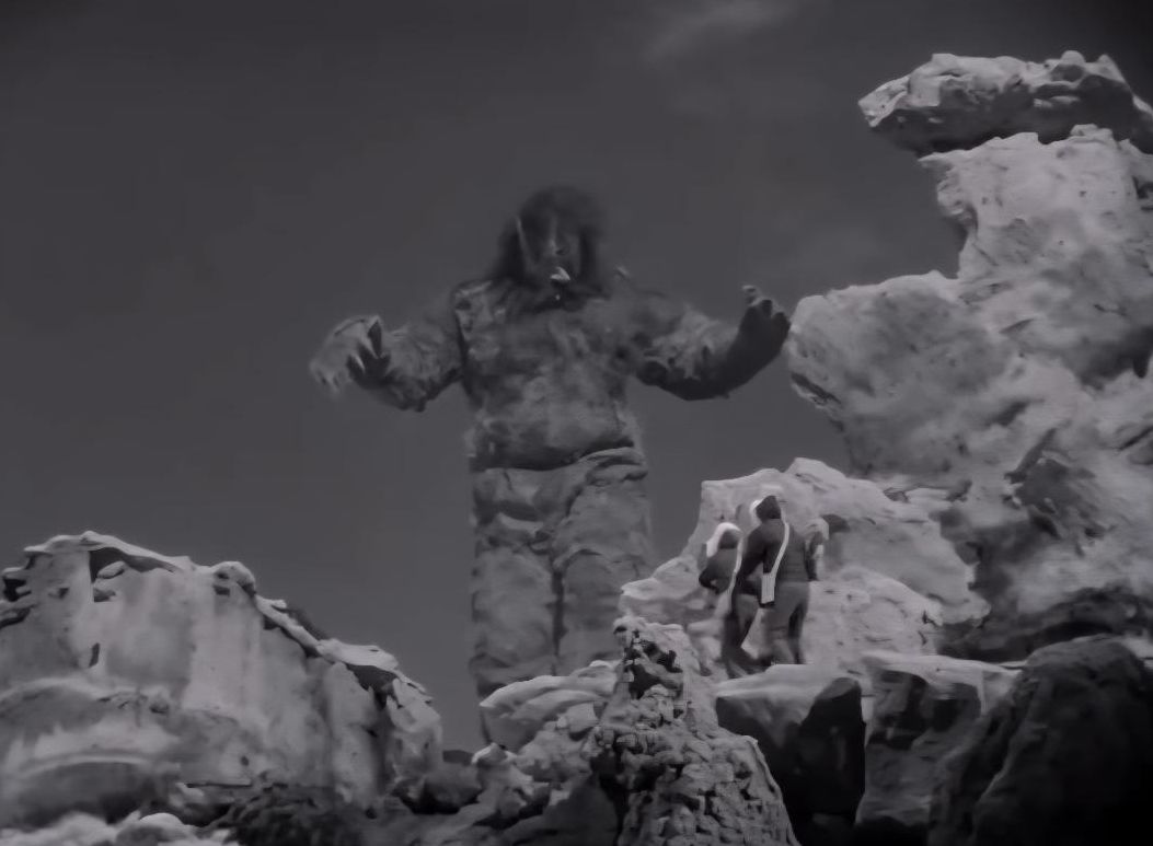 While John and Don are at the station, they are menaced by a gigantic cyclops and driven into a small cave to escape it. Will spies the creature with the Jupiter-2's radio telescope and races to the weather station, where he is able to kill the monster and save