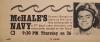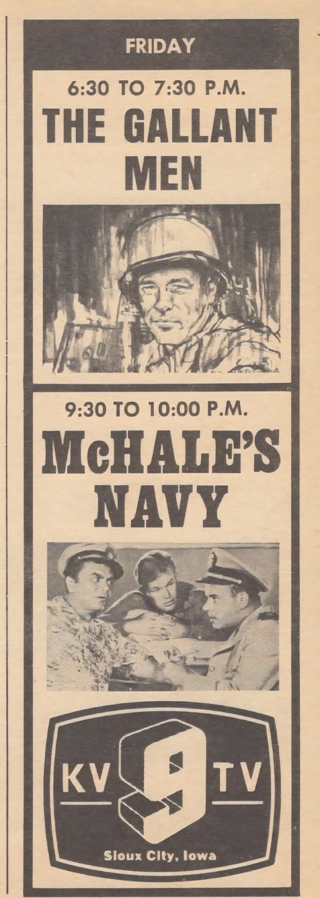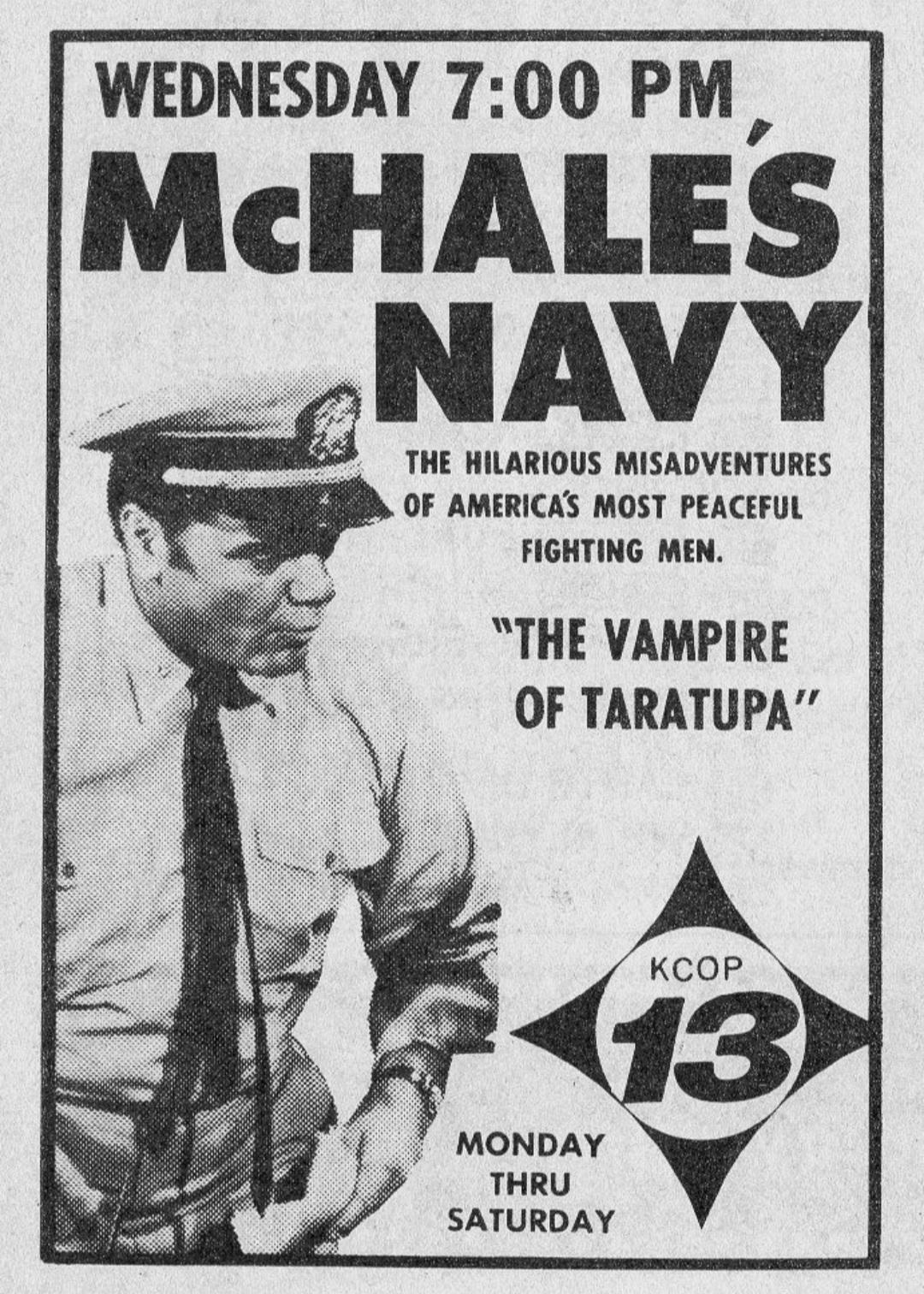 McHale's Navy is an American sitcom starring Ernest Borgnine that aired 138 half-hour episodes over four seasons, from October 11, 1962, to April 12, 1966, on the ABC television network. The series was filmed in black and white and originated from a one-hour drama titled "Seven Against the Sea", broadcast on April 3, 1962, as part of the Alcoa Premiere anthology series. The ABC series spawned three feature films: McHale's Navy ( 1964 ); a sequel, McHale's Navy Joins the Air Force ( 1965 ); and a 1997 sequel-remake of the original series.