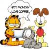 Garfield is an American comic strip created by Jim Davis. Originally published locally as Jon in 1976 ( later changed to Garfield in 1977 ), then in nationwide syndication from 1978, it chronicles the life of the title character Garfield the cat, Odie the dog, and their owner Jon Arbuckle. As of 2013, it was syndicated in roughly 2,580 newspapers and journals; the comic held the Guinness World
