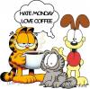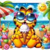 Garfield is an American comic strip created by Jim Davis. Originally published locally as Jon in 1976, then in nationwide syndication from 1978, it chronicles the life of the title character Garfield. Originally created with the intentions to "come up with a good, marketable character", Garfield has spawned merchandise earning $750 million to $1 billion annually.