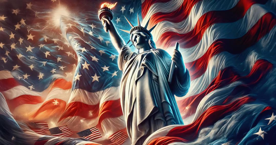 The flag of the United States is a symbol of freedom before which Americans recite the pledge of allegiance.