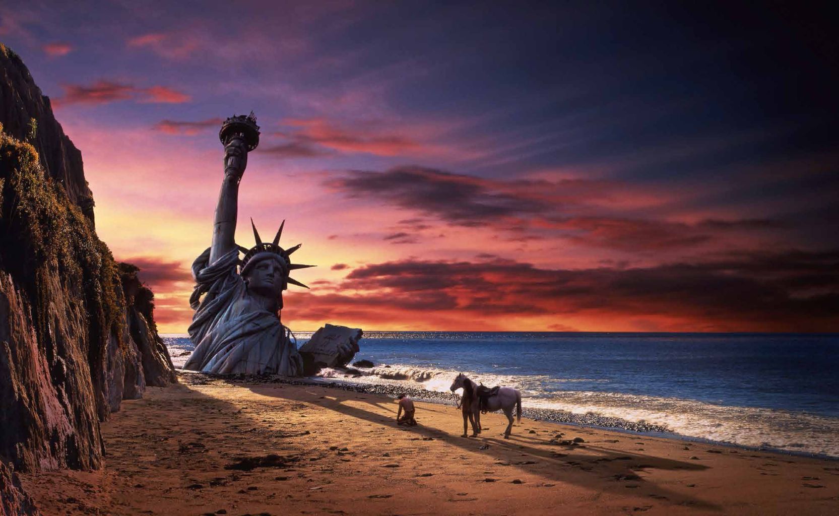 Concept Designer Mentor Huebner is believed to have produced the bulk of the art that has so far been made public. Former Disney artist Don Peters claimed that he first introduced the ruined Statue of Liberty scenes to the Apes project when he did the original publicity paintings for Jacobs. Associate producer Mort Abrahams remembered Jacobs assembling a huge 'merchandising book' with 130 pages of ideas to pitch the movie to film studios.