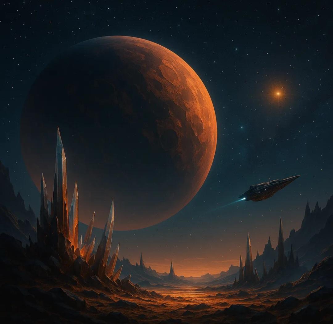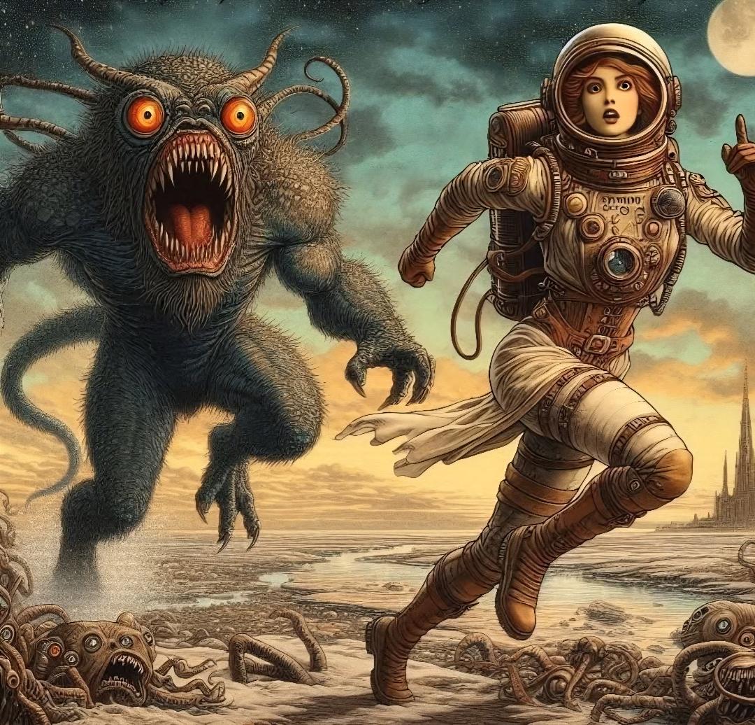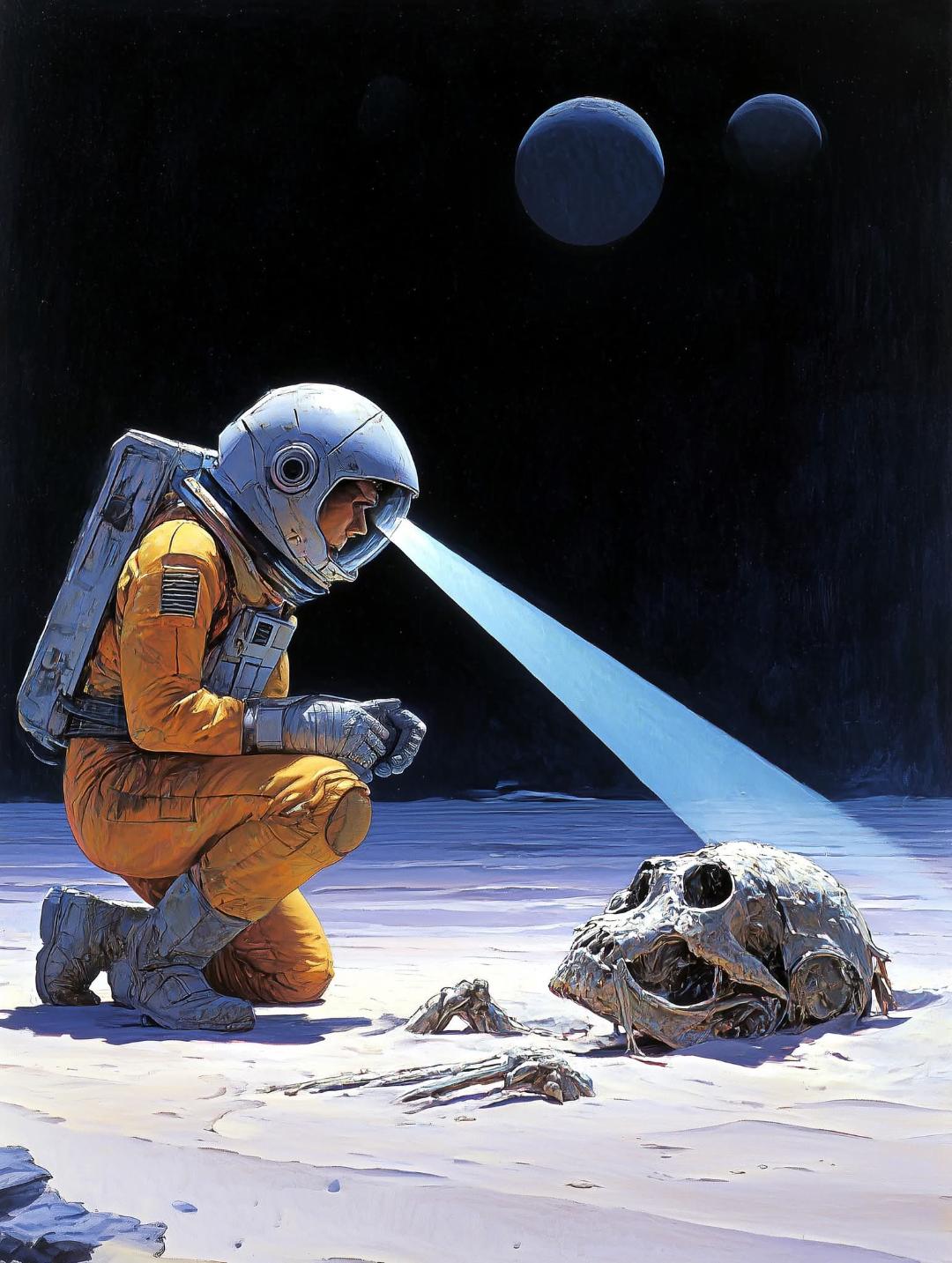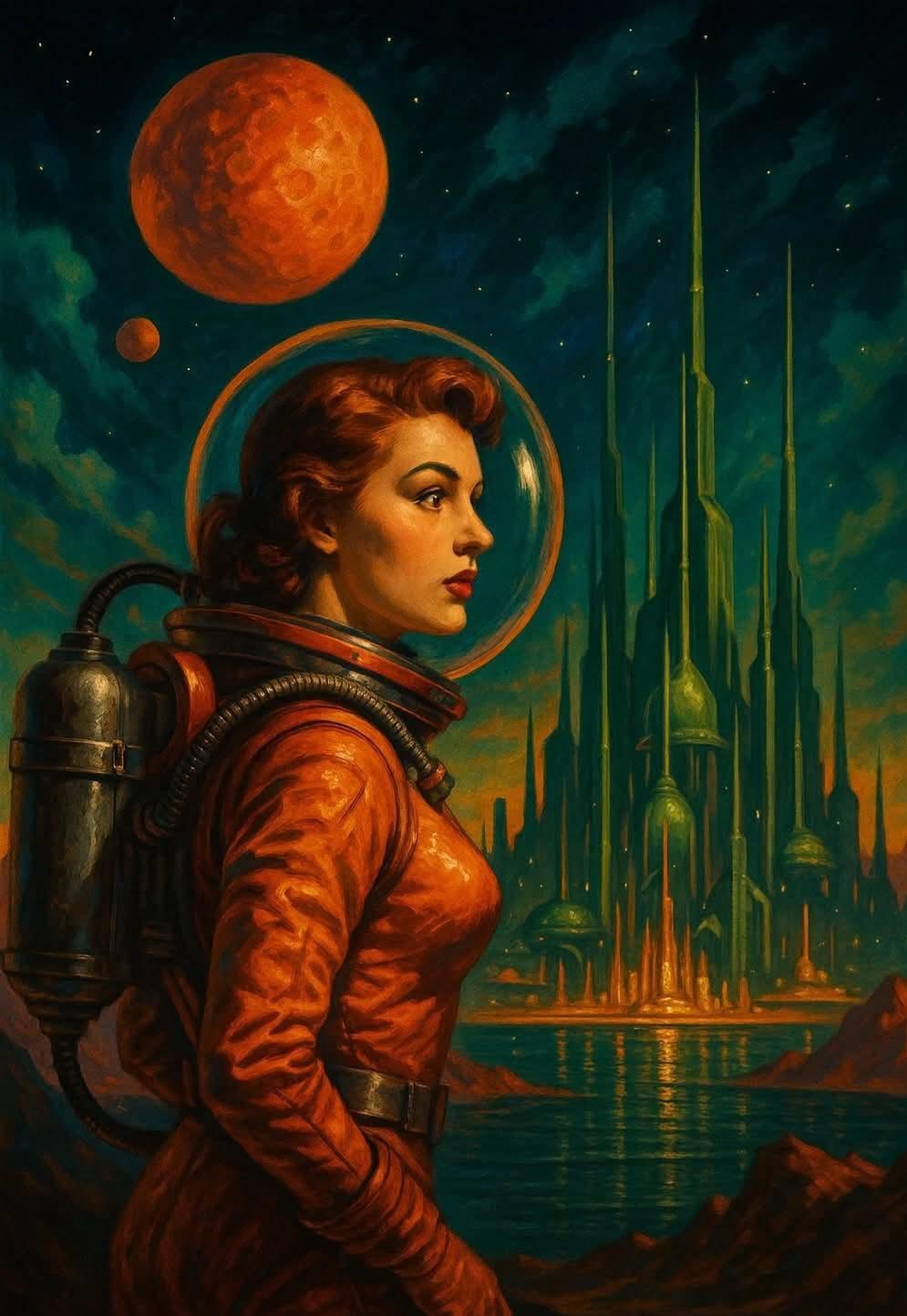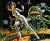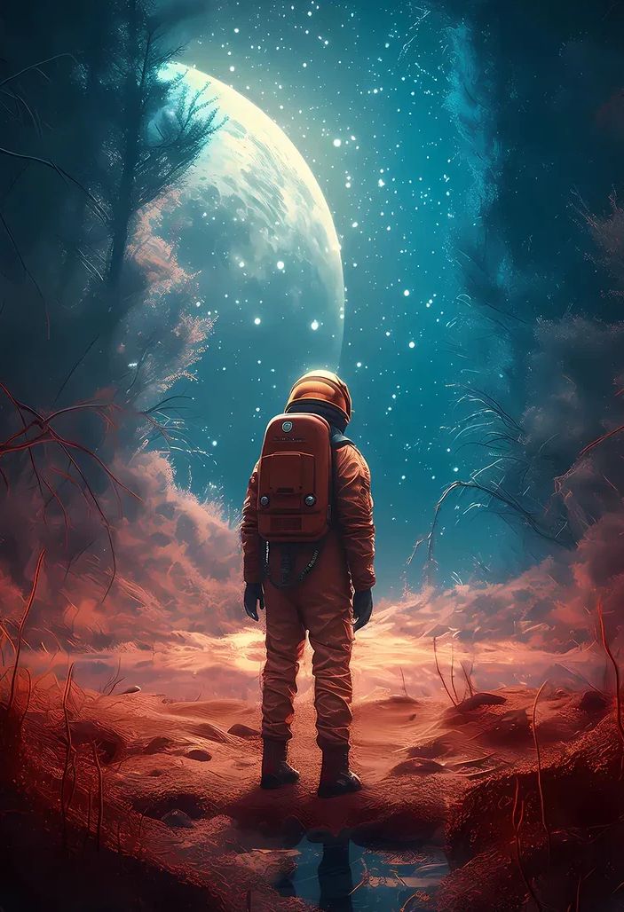 Science fiction art is a type of illustration that contains themes such as the future, otherworldly, and fanciful. It frequently features future cities, spacecraft, and technology, as well as extraterrestrial worlds and monsters.