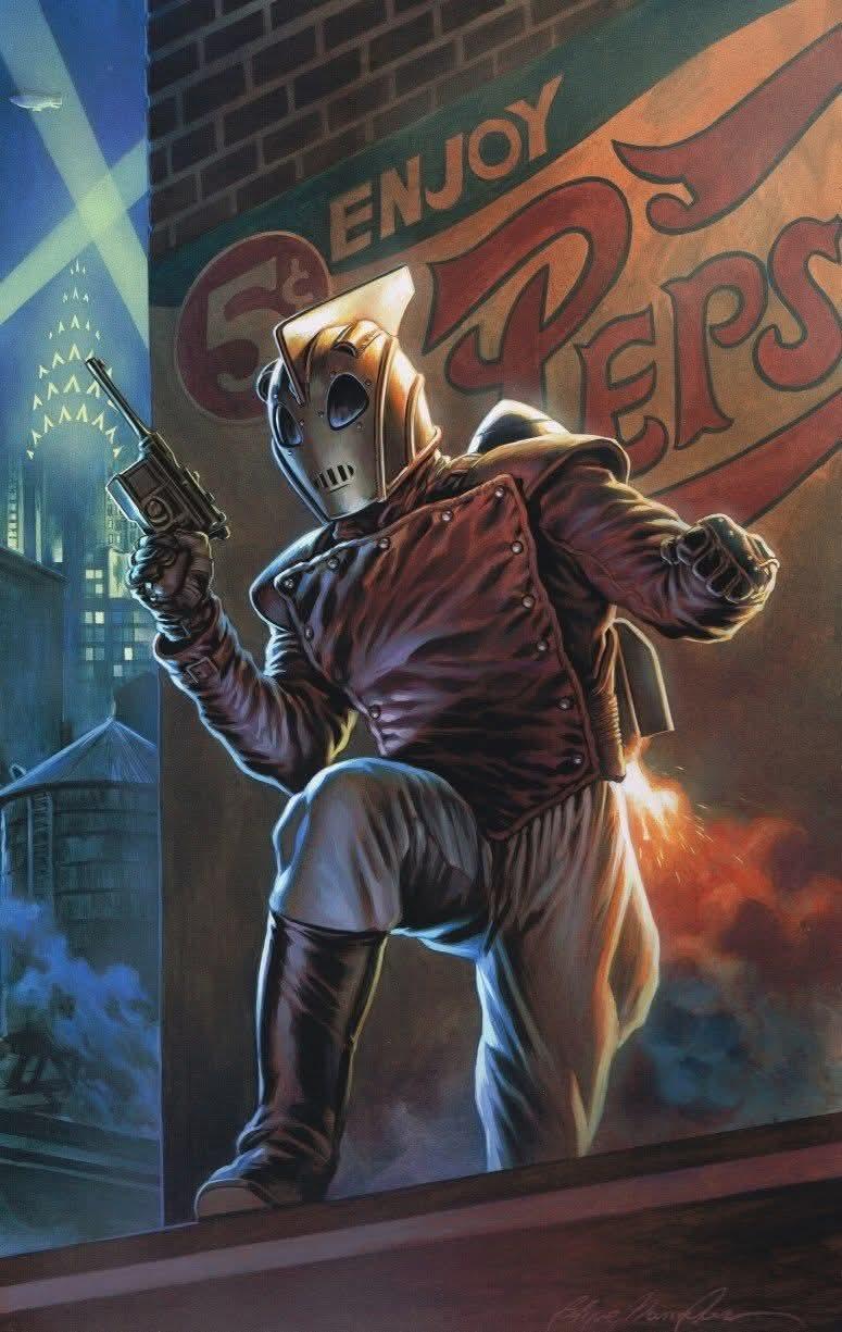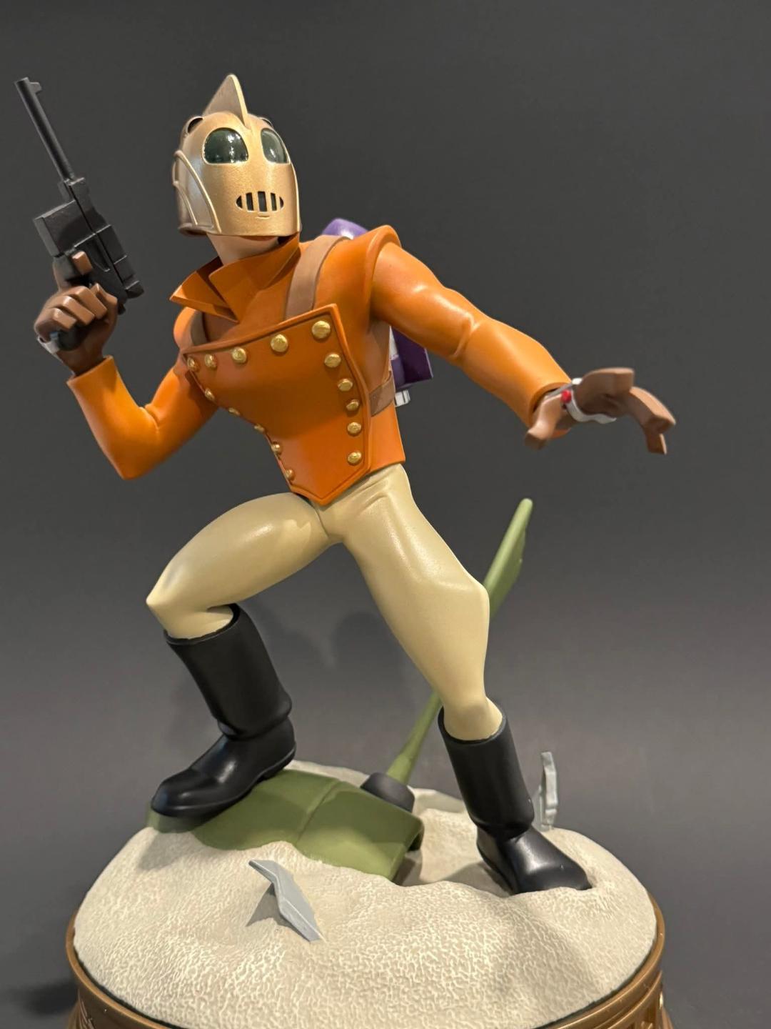 Keep an eye on the skies and watch for our newest Disney Q-Fig Elite, The Rocketeer by QMX. Based on the classic Disney action movie The Rocketeer, the Rocketeer Q-Fig Elite captures our mysterious hero just as he blasts off to save the day. Leaving a trail of flame and smoke behind as he roars into the air, The Rocketeer will defend America and her allies against the Nazi threat with grit and you guessed it a rocket pack. Clad in his signature helmet and leather flight jacket, we've spared no details in recreating the iconic look of this mid-century hero. The Rocketeer Q-Fig Elite stands 5 inches tall from the fiery diorama display base to the top of the American flag billowing behind our hero.