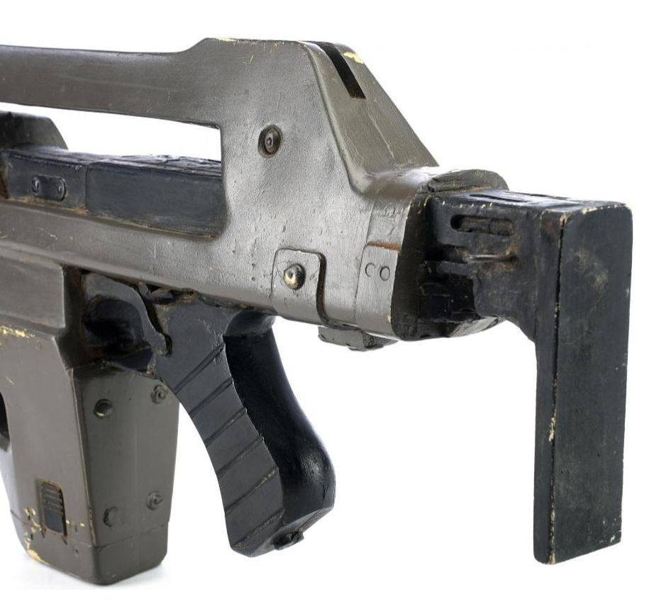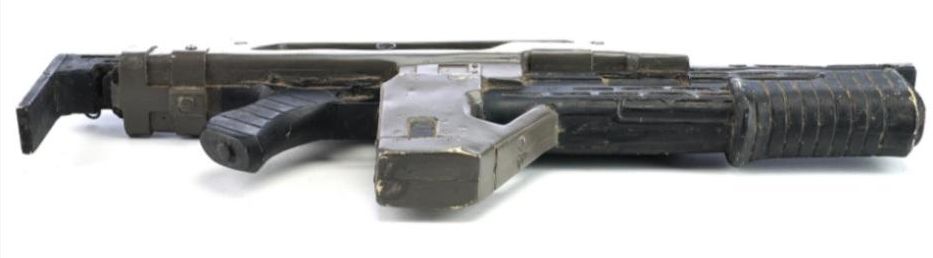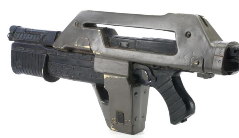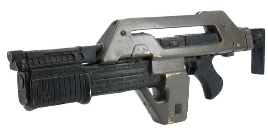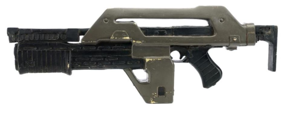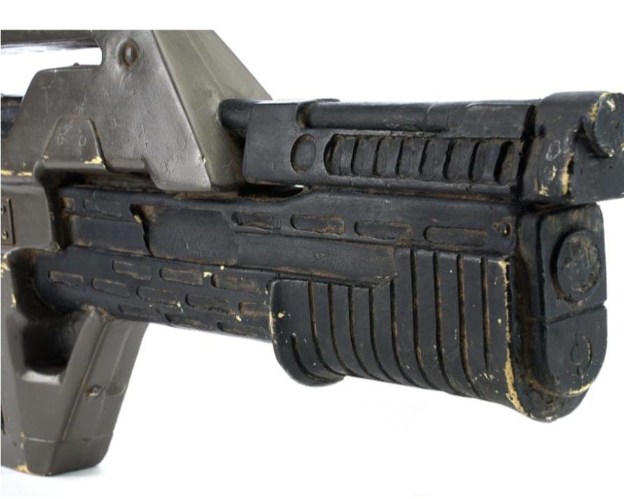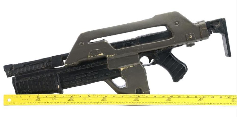 A lightweight M-41A Pulse Rifle from James Cameron's sci-fi action sequel Aliens. In the film, Colonial Marines used their M-41A Pulse Rifles throughout the mission to Hadley's Hope on Planet LV-426, searching for survivors of what was revealed to be an attack by xenomorphs.