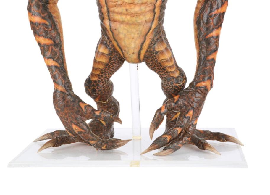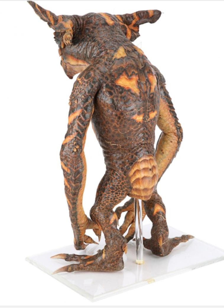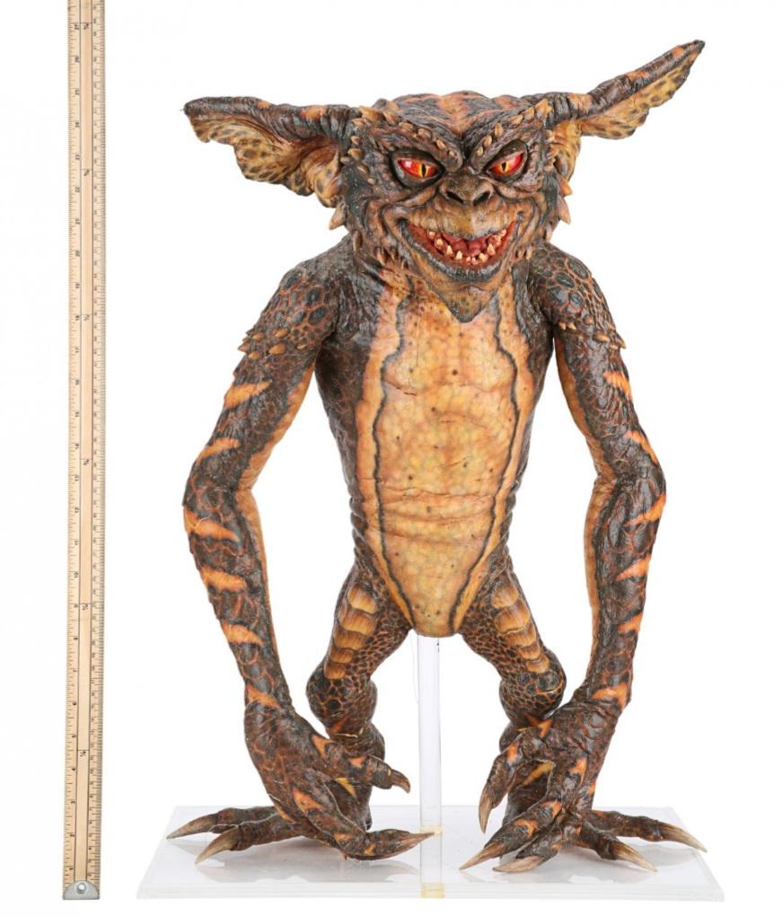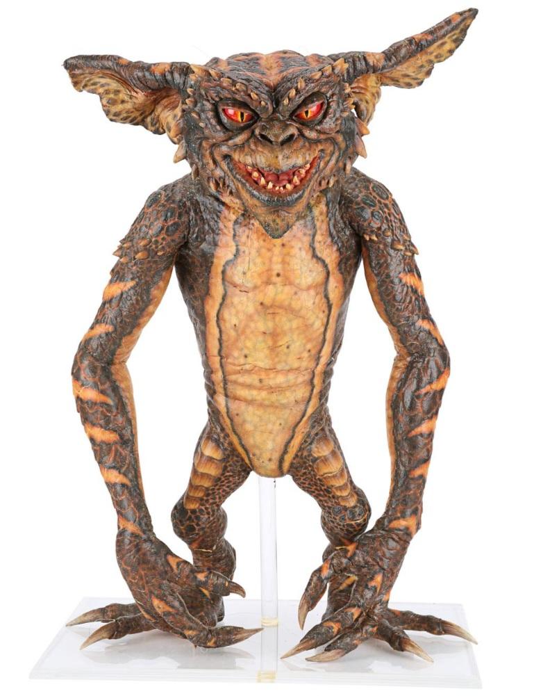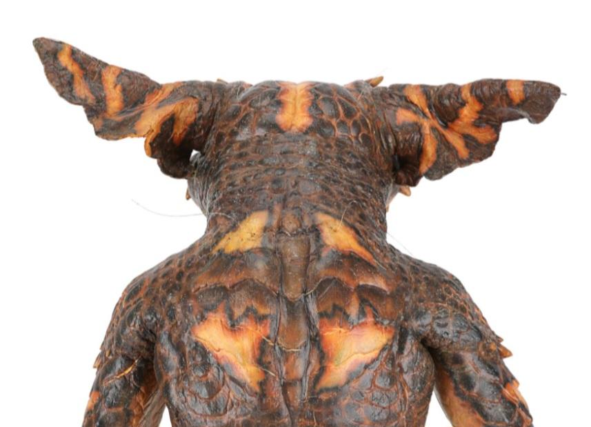 A gremlin puppet from Joe Dante's comedy-horror sequel Gremlins 2: The New Batch. After taking over the Clamp Center in New York, a horde of vile gremlins wreaked havoc on those still trapped in the high-tech, high-rise building. This full-body puppet was created by Academy Award-winning special makeup effects artist Rick Baker and his team.