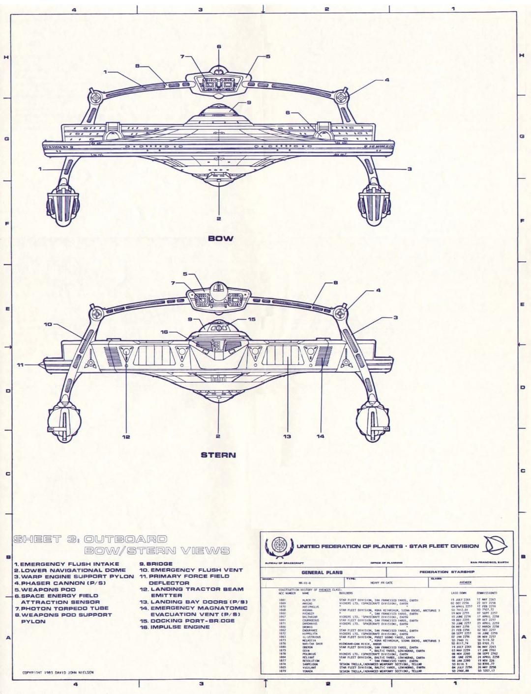 Featured here are Star Trek blueprint drawings from numerous Star Trek films. Such as Klingon Battle Cruiser, Alien worm, spacesuits, Shuttle Craft, and other devices from the Enterprise etc.