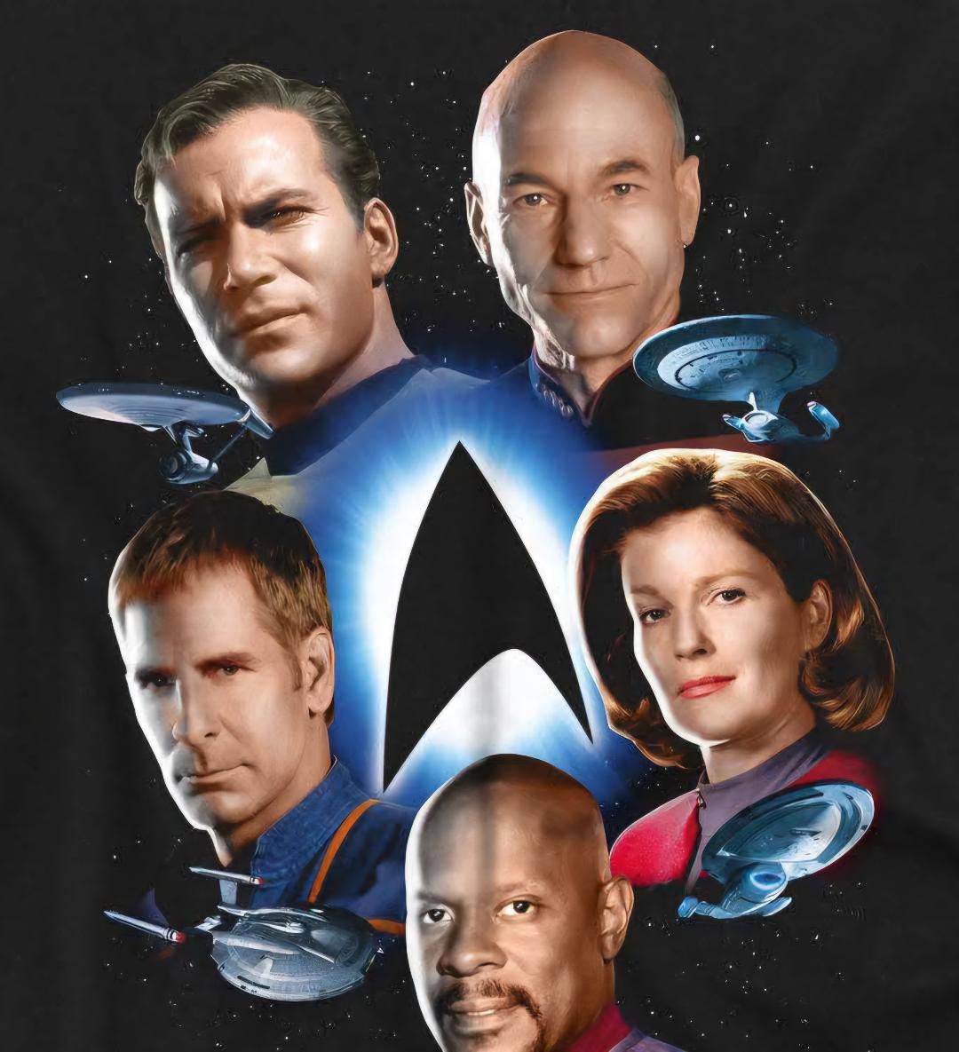 William Shatner as James T. Kirk, commanding officer of the USS Enterprise.; Leonard Nimoy as Spock, first officer and science officer.; DeForest Kelley as Leonard McCoy, chief medical officer.; James Doohan as Montgomery Scott, chief engineer.; Nichelle Nichols as Nyota Uhura, communications officer.; Walter Koenig as Pavel Chekov, navigator and security/tactical officer.