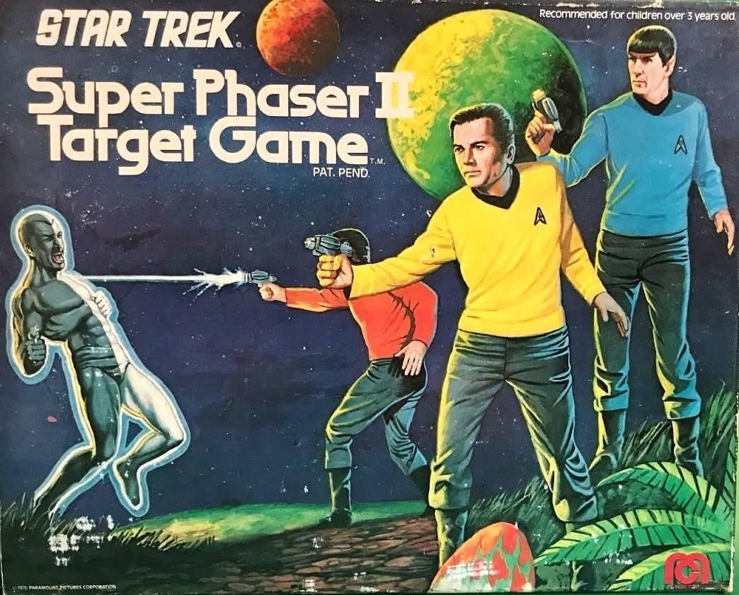 and Admiral Kirk, Captain Spock, and Khan from Star Trek II: The Wrath of Khan.