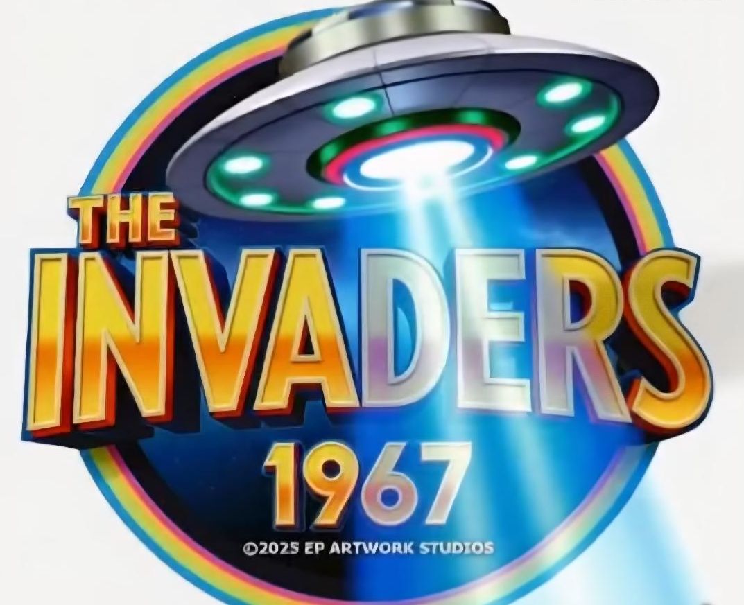 A beam emitting flying saucer imperils David Vincent ( Roy Thinnes ) in these fan art from the 1967-68 alien invasion sci-fi TV series. |