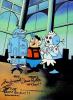 Signed by Bill Hanna, Joe Barbera and Animator Bob Singer. With later laser reproduction background. Studio seal and Certificate of Authenticity. Animation cels were working materials with irregularities commensurate to studio use and production process. May