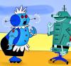 Jetsons: The Movie production animation cels of Jane and George Jetson from Hanna Barbera, 1990.
