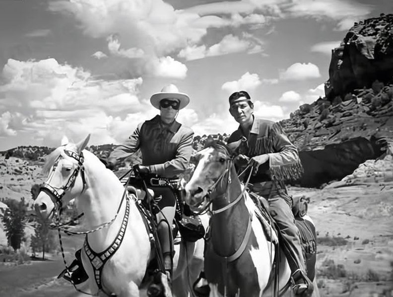 The "lone" surviving ranger thereafter disguises himself with the black mask Tonto made and travels with Tonto throughout Texas and the American West to assist those challenged by the lawless elements. In the first episode they are attacked from above just after he recovers and Tonto distracts the attacker from above as the Lone Ranger first shoots the attacker then tries to climb the cliff he is on. The episode ends with him on the cliff but slipping.