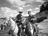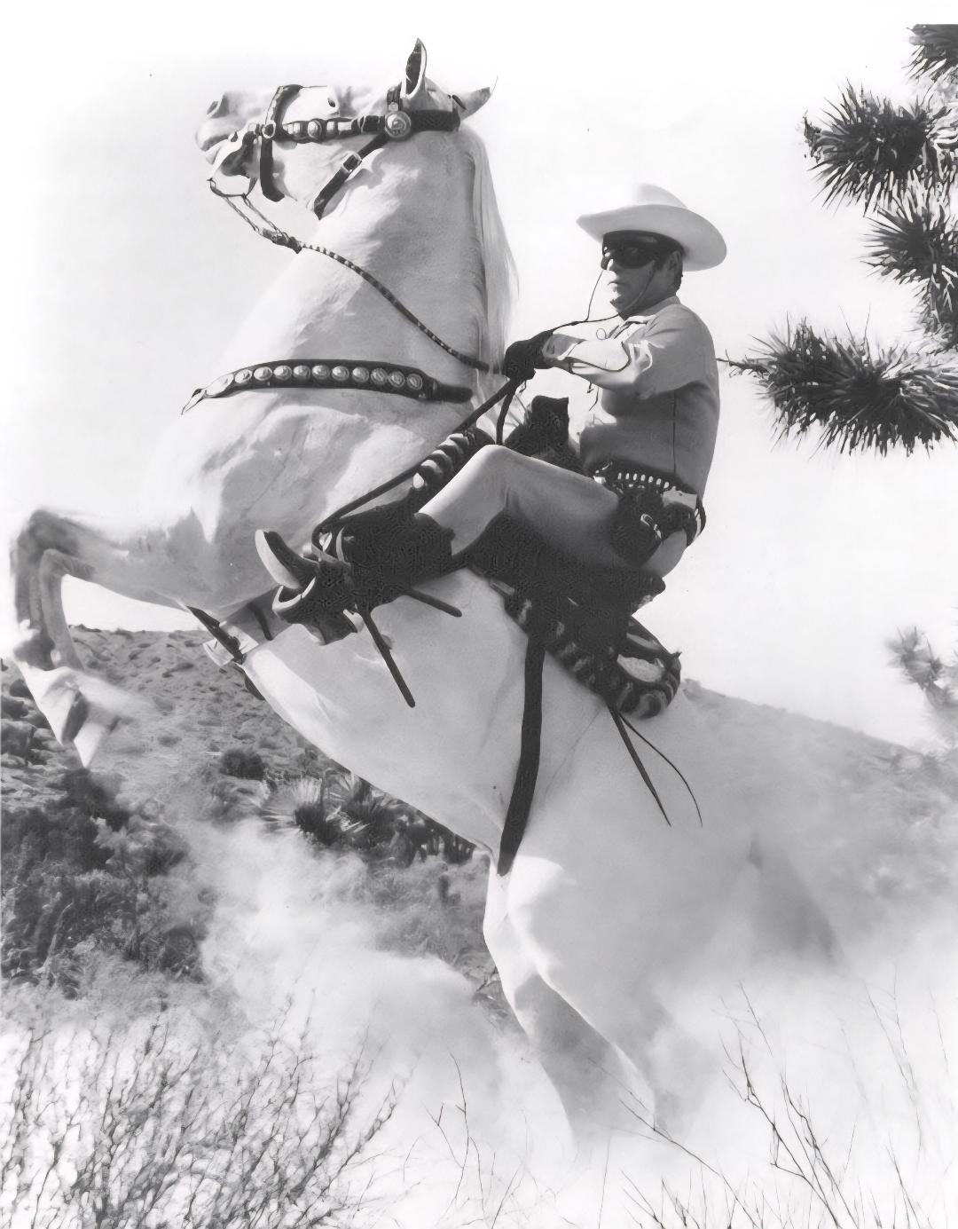 A silver mine in the second episode supplies The Lone Ranger with the funds required to finance his wandering lifestyle and the raw material for his signature bullets. Also in Season One, Episode Two, The Lone Ranger and Tonto come upon a prone white horse severely injured by an American Bison. The Lone Ranger shoots the buffalo before it can kill the horse. They then attend to the stricken horse. When, after some days, he is healed, they contemplate his name. Tonto says that he is "Like a mountain with snow - silver white". The Lone Ranger states that "Silver" will be his name. At the end of most episodes, after The Lone Ranger and Tonto leave, someone asks the sheriff or other person of authority who the masked man was. The person then responds that it was The Lone Ranger, who is then heard yelling "Hi-Yo Silver, away!" as he and Tonto ride away on their horses.