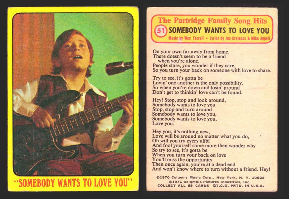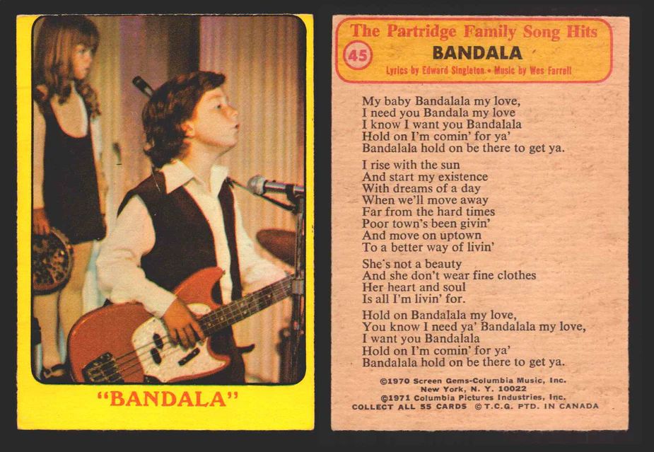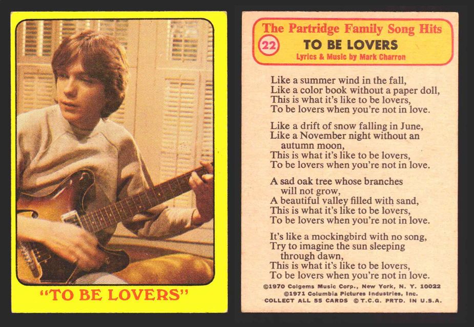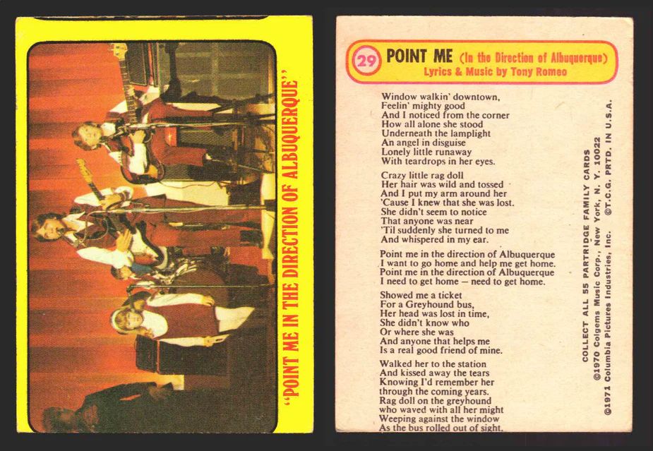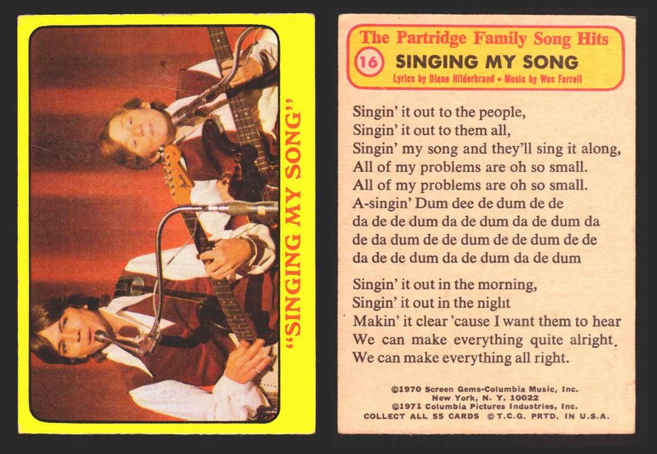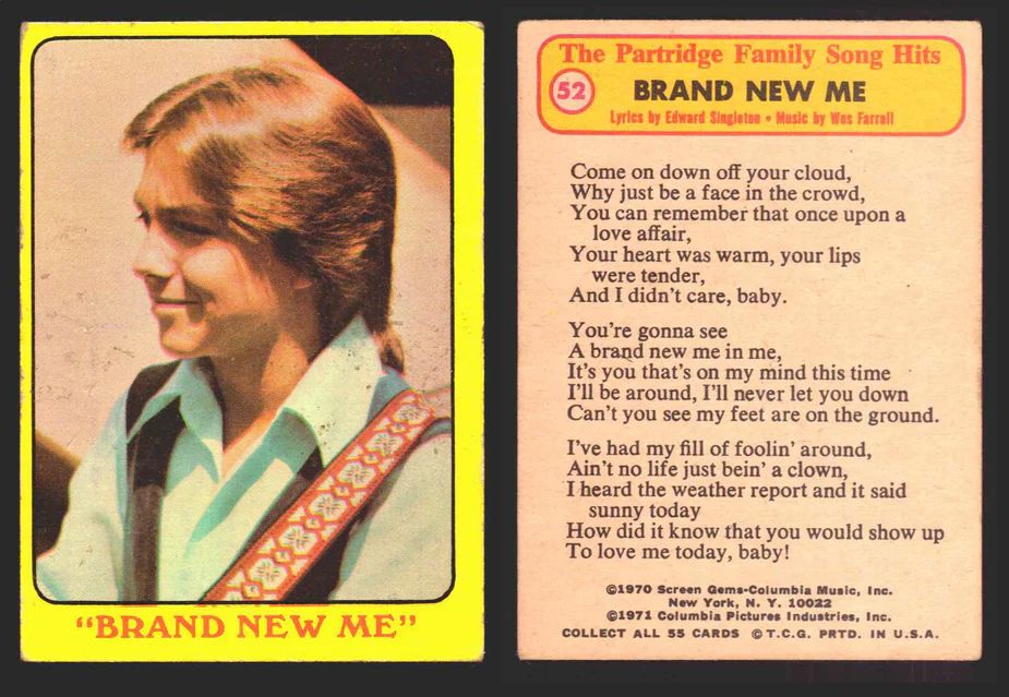 The Partridge Family 1971 Series 1 Yellow trading cards issued by Topps. A total of 55 cards complete the set.Value: $150. ( Set )