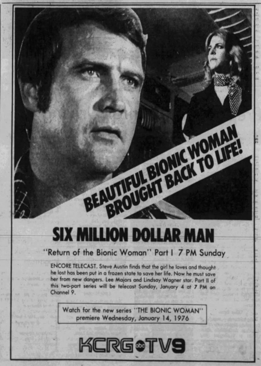 A spin-off television series, The Bionic Woman, featuring the lead female character Jaime Sommers, ran from 1976 to 1978. Three television movies featuring both bionic characters were also produced from 1987 to 1994.