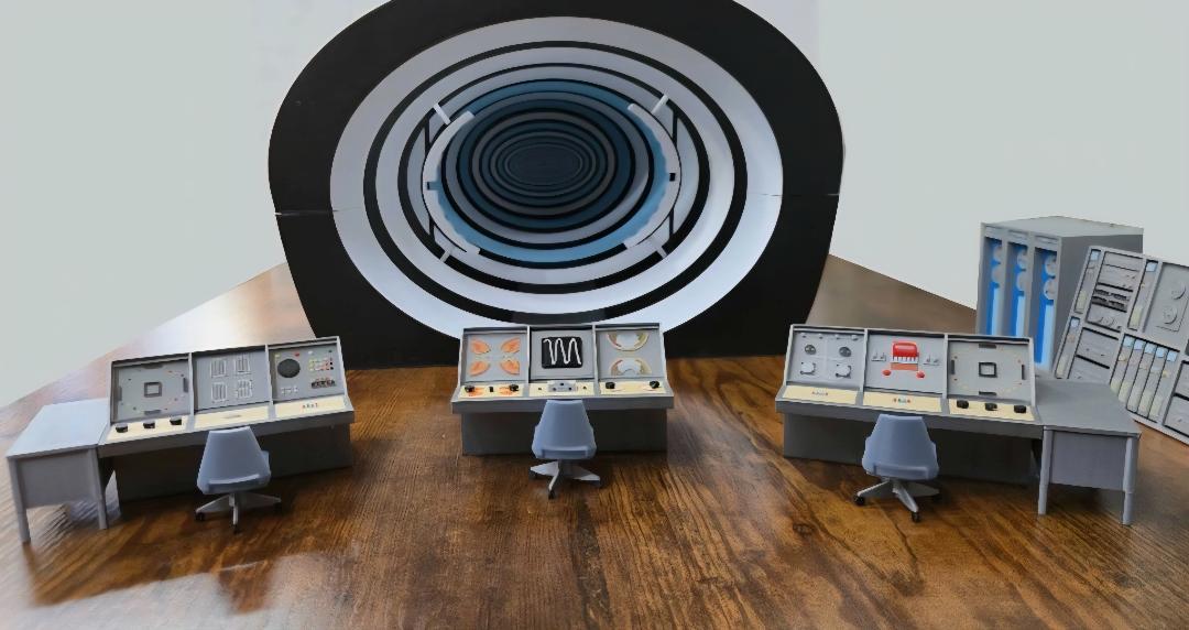 I placed clear laser cut acrylic windows over the control desk sections, just like in the original show.