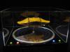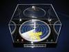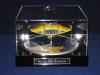 Features include: Long life (100,000 hour) jumbo, diffused light, LED's in yellow, red, blue and green. Laser etched printing on the top indicating "MAIN POWER", "REACTOR", "KEEL HATCH" and "LAUNCH FS/1", plus the "N.I.M.R. FS-1 FLYING SUB" nameplate on the front. This is all accentuated by the circular metallic nickel finished radar screen, with the scanner arm sweeping across its face. The 9.5" diameter, custom built base that holds the model is made of .25" thick clear acrylic and was designed to angle the Flying Sub up slightly. A small tab fits into the slot on the lower docking ring, which lines up to your model perfectly. There is a micro "ON/OFF" switch in the back of the gloss black base and a port to connect up the required 9-volt transformer (supplied).