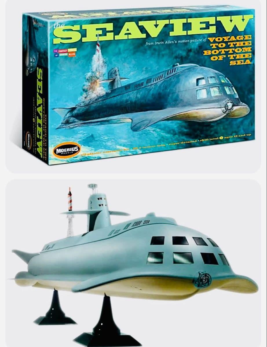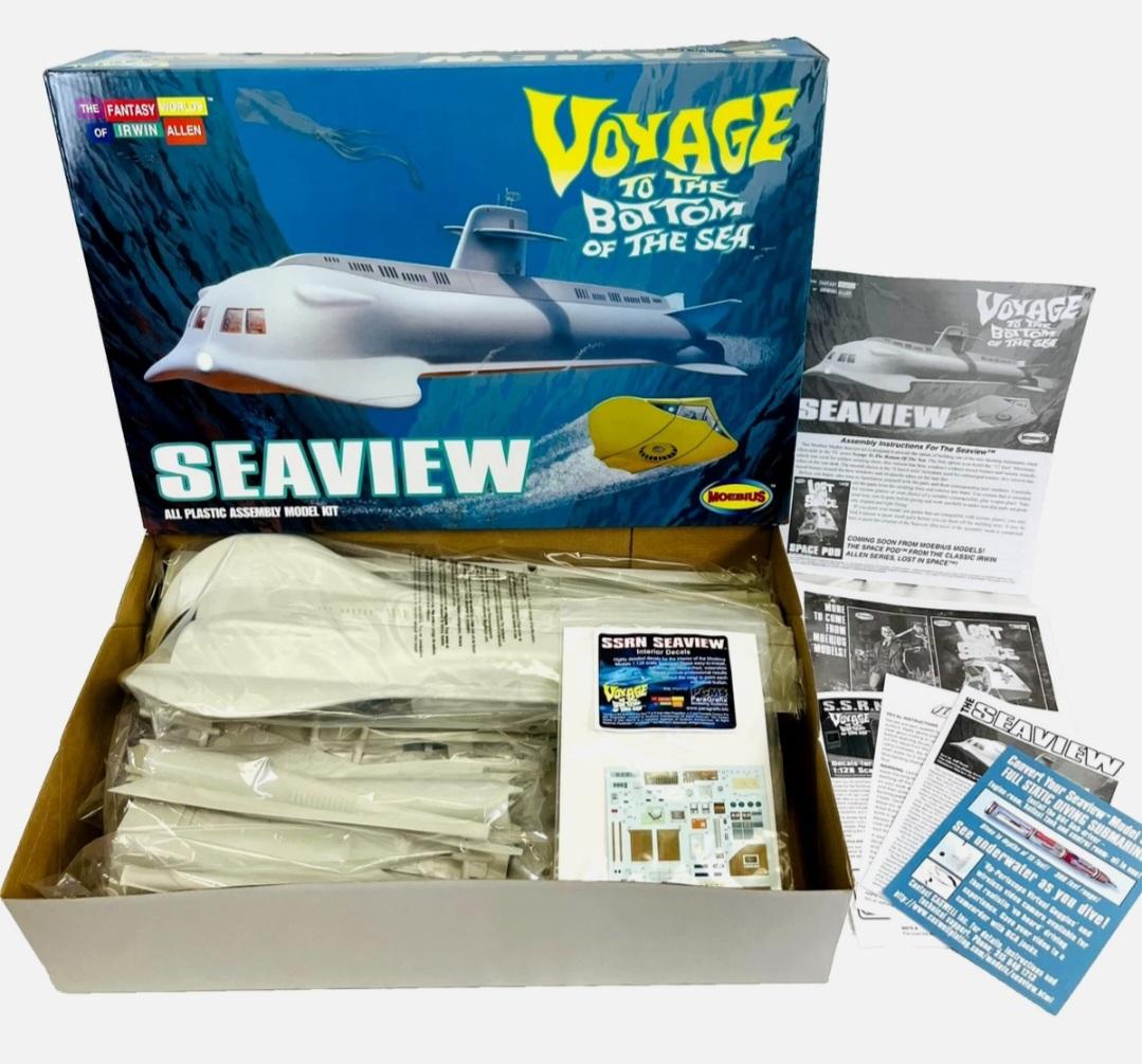 Hot new Moebius Seaview kit. Now shipping-new and sealed / unopened. This long-awaited kit has finally arrived. Perhaps the finest Seaview kit ever made with many extras, crew figs.,diving bell, Flying sub different window configurations, etc.Retails: $85.